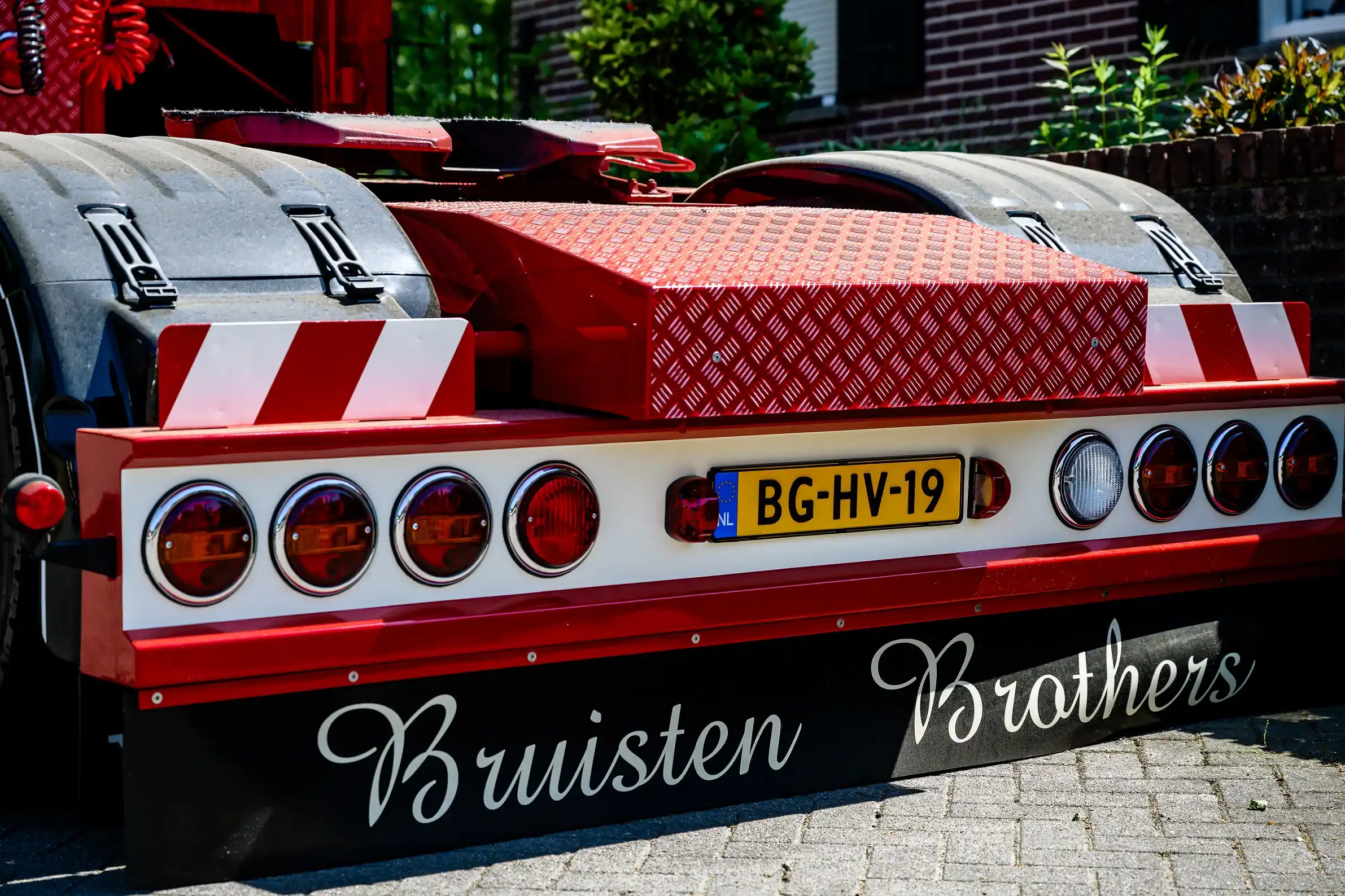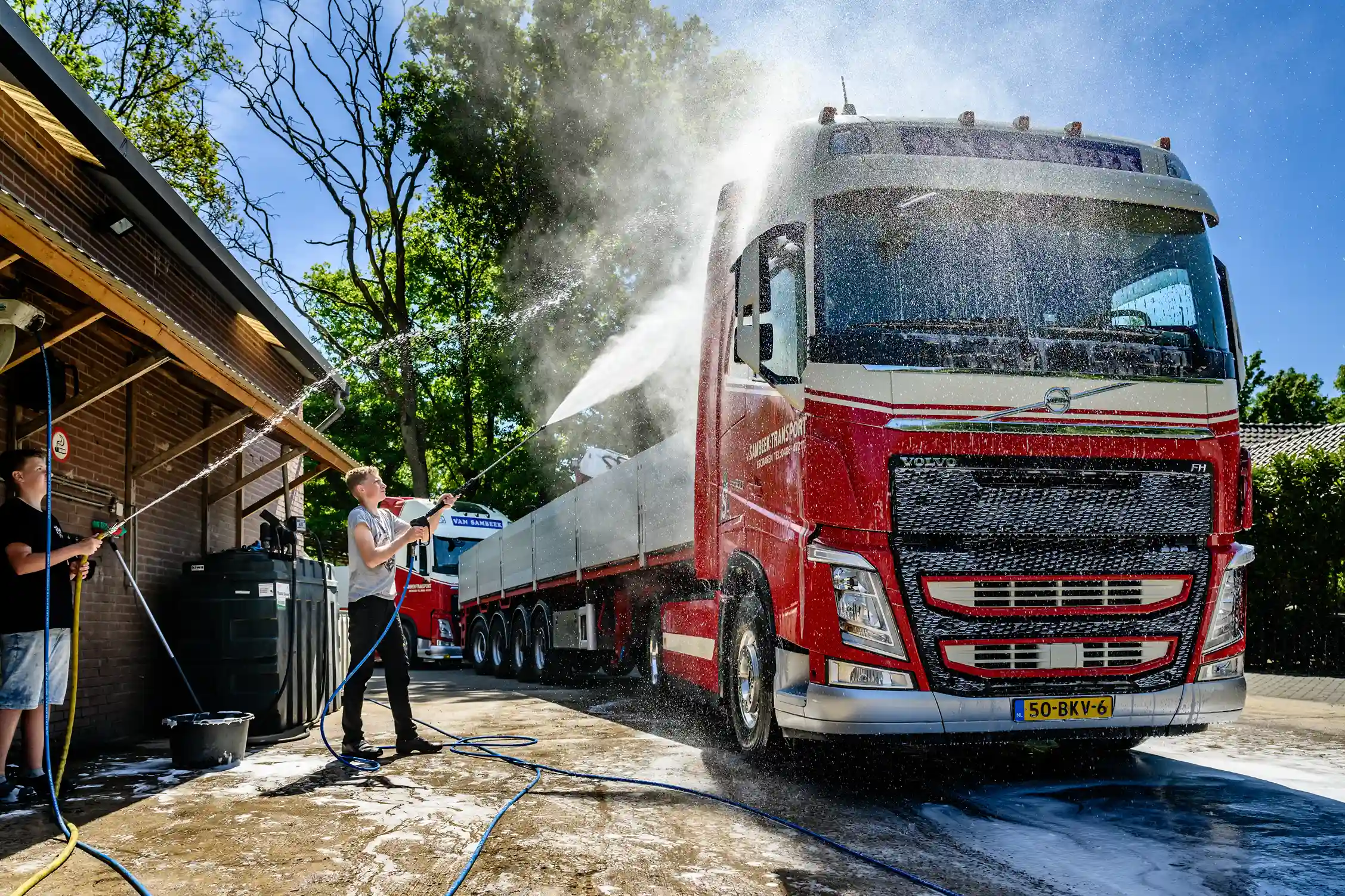 De opvallendste nieuwkomer in de vloot is zonder twijfel de Volvo FH 500pk 6×2 oldskool trekker. Bas Bruisten, eigenaar van Van Sambeek Transport, licht toe: “Onze chauffeur Teun had altijd al geroepen dat hij een lage ‘oldskool’ truck wilde rijden. We hebben zelf een aantal jaren terug een Volvo FH16 520 pk uit 1998 geheel opgeknapt en hier krijgen we dagelijks nog ontzettend leuke reacties op! Ook bij andere trucks in ons wagenpark hebben we het een en ander aan ‘oldskool’ accessoires opgebouwd. Onze chauffeurs hebben gedeeltelijk inspraak in de opbouw hiervan. Het maakt ze enthousiast en trots om hiermee te werken, wat voor ons ook ontzettend belangrijk is. Dus, toen we een nieuwe trekker gingen bestellen, hebben we de droom van Teun gerealiseerd. Samen met Teun en mijn broer Joost (mede-eigenaar Van Sambeek Transport) hebben we elk detail besproken. Het resultaat is een moderne truck met een nostalgisch karakter, zonder afbreuk te doen aan onze herkenbare rood-beige huisstijl.”